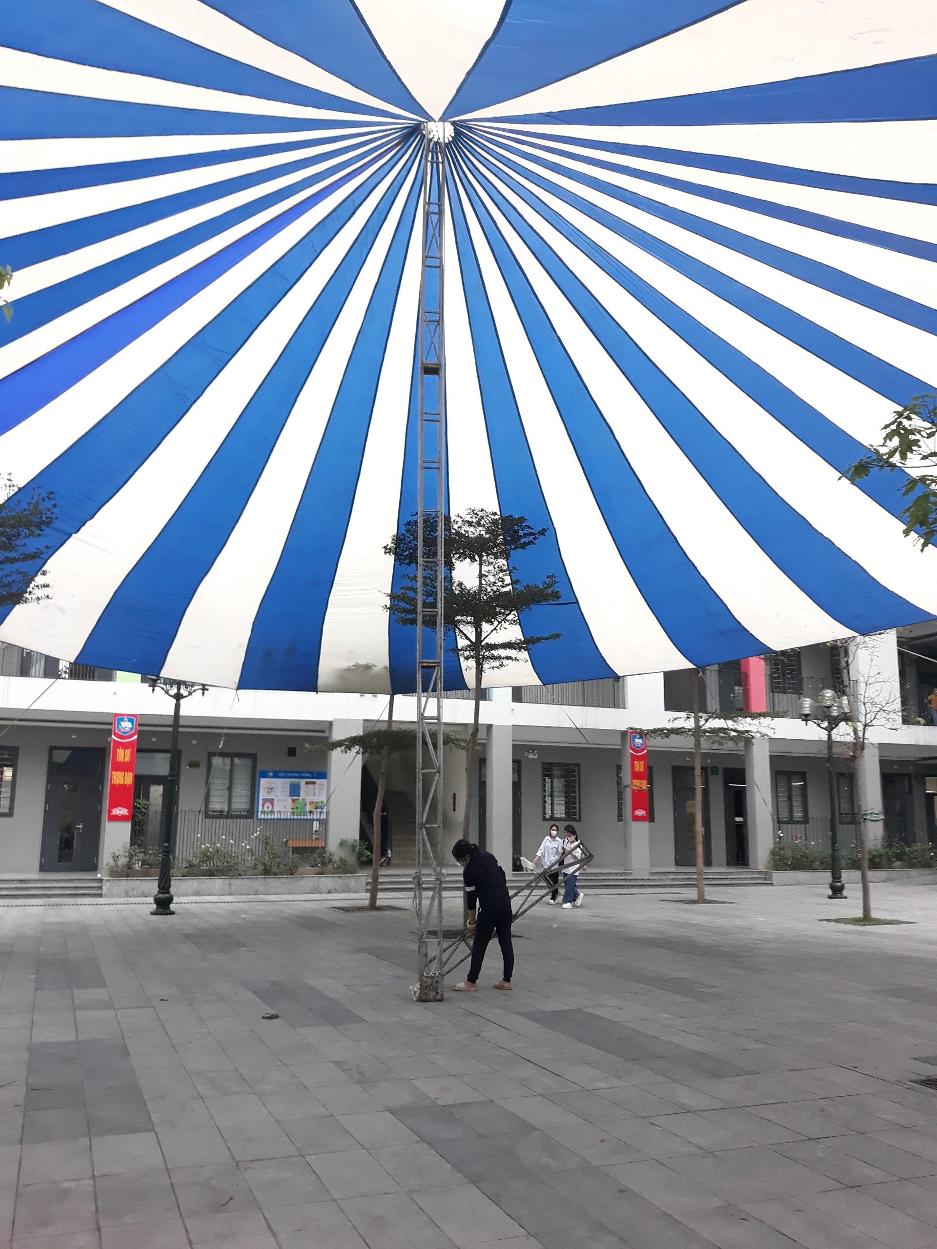 - Đo đạc diện tích cần phủ: Đây là cách để bạn đưa ra phương án thi công và kích thước dù tròn hợp lý nhất.