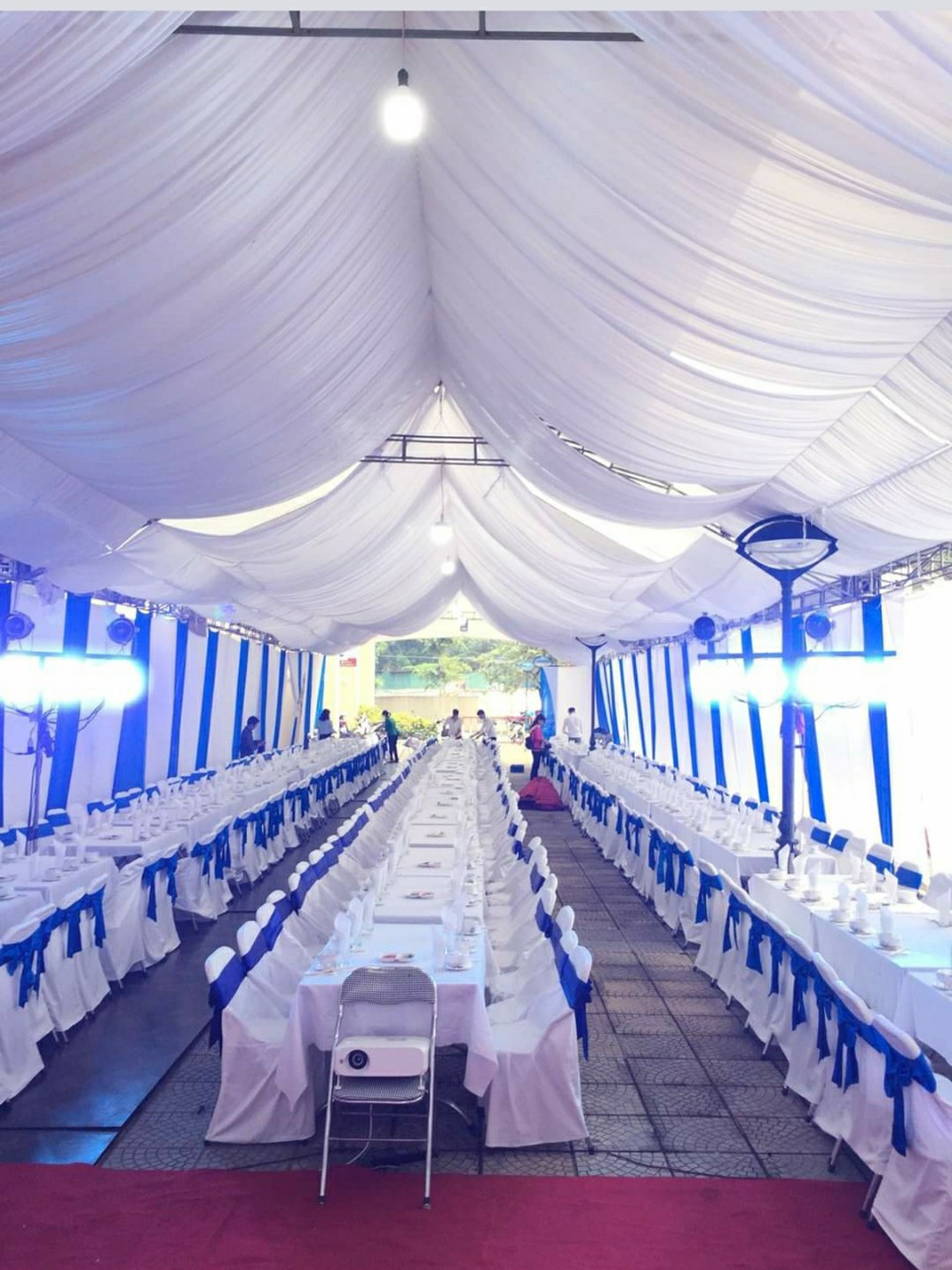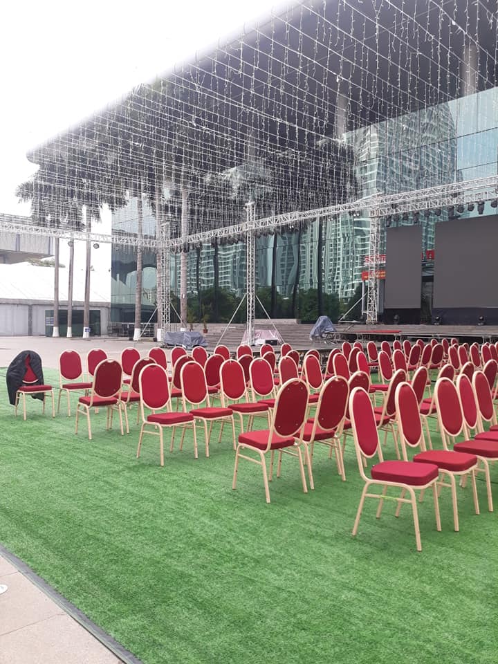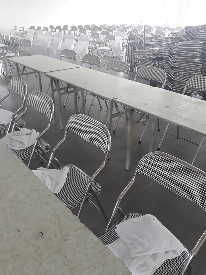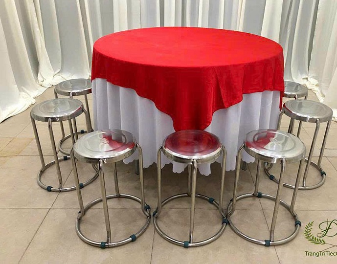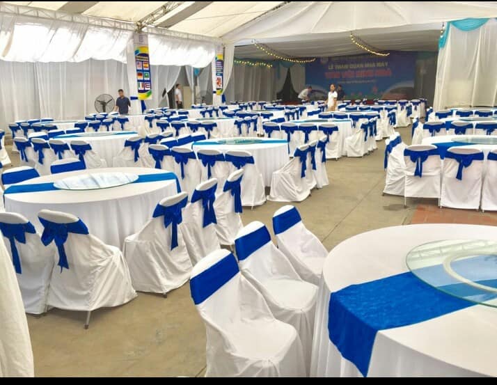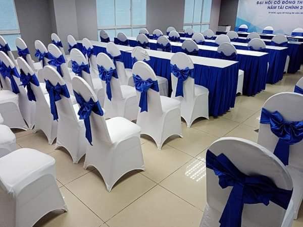 Mọi chiếc bàn được đem tới cho khách hàng đều được chúng tôi sử dụng những chiếc khăn trải bàn đẹp nhất. Kèm theo đó là rip tới tận chân bàn. Những chiếc bàn được trang trí tuyệt vời như vậy, những chiếc ghế đi kèm được trang trí đẹp không kém phần. Ghế chúng tôi sẽ bọc vải bên ngoài và thắt nơ hợp tông màu với màu khăn trải bàn. Điều này nhằm tăng thêm tính thẩm mỹ, tính sang trọng của hội nghị.