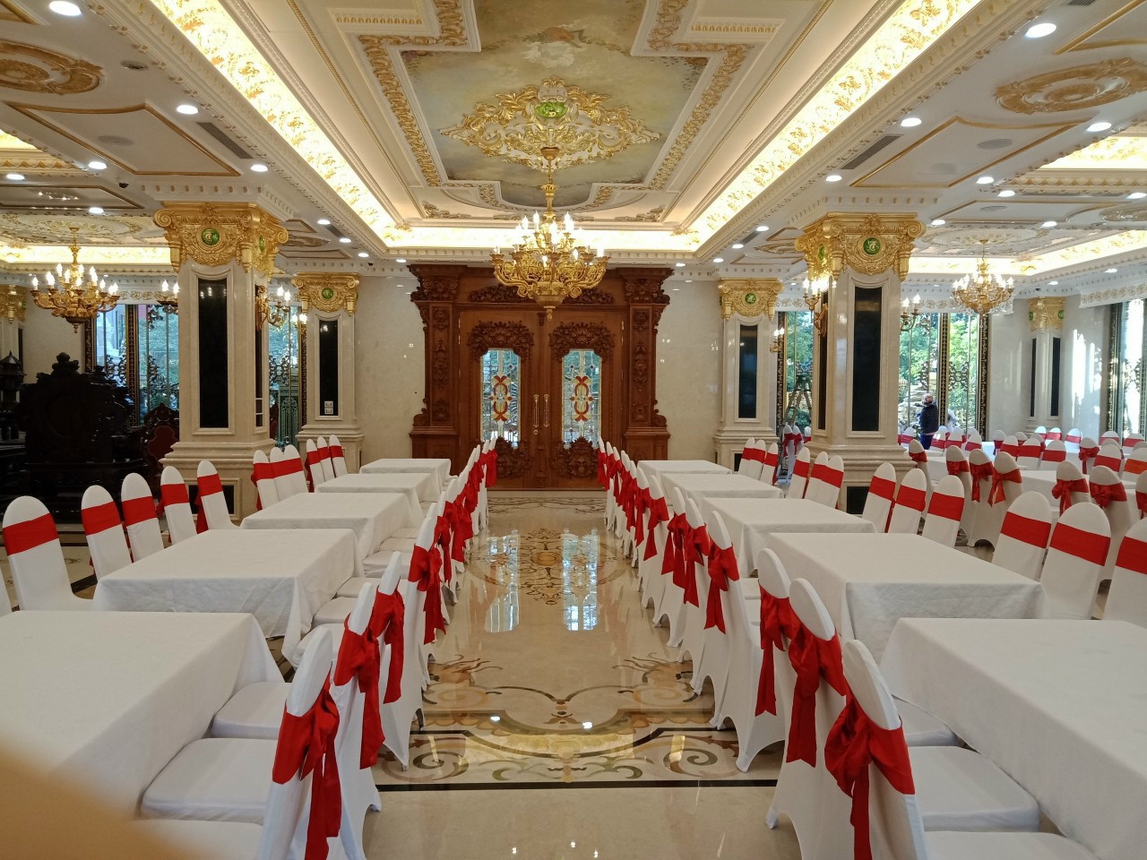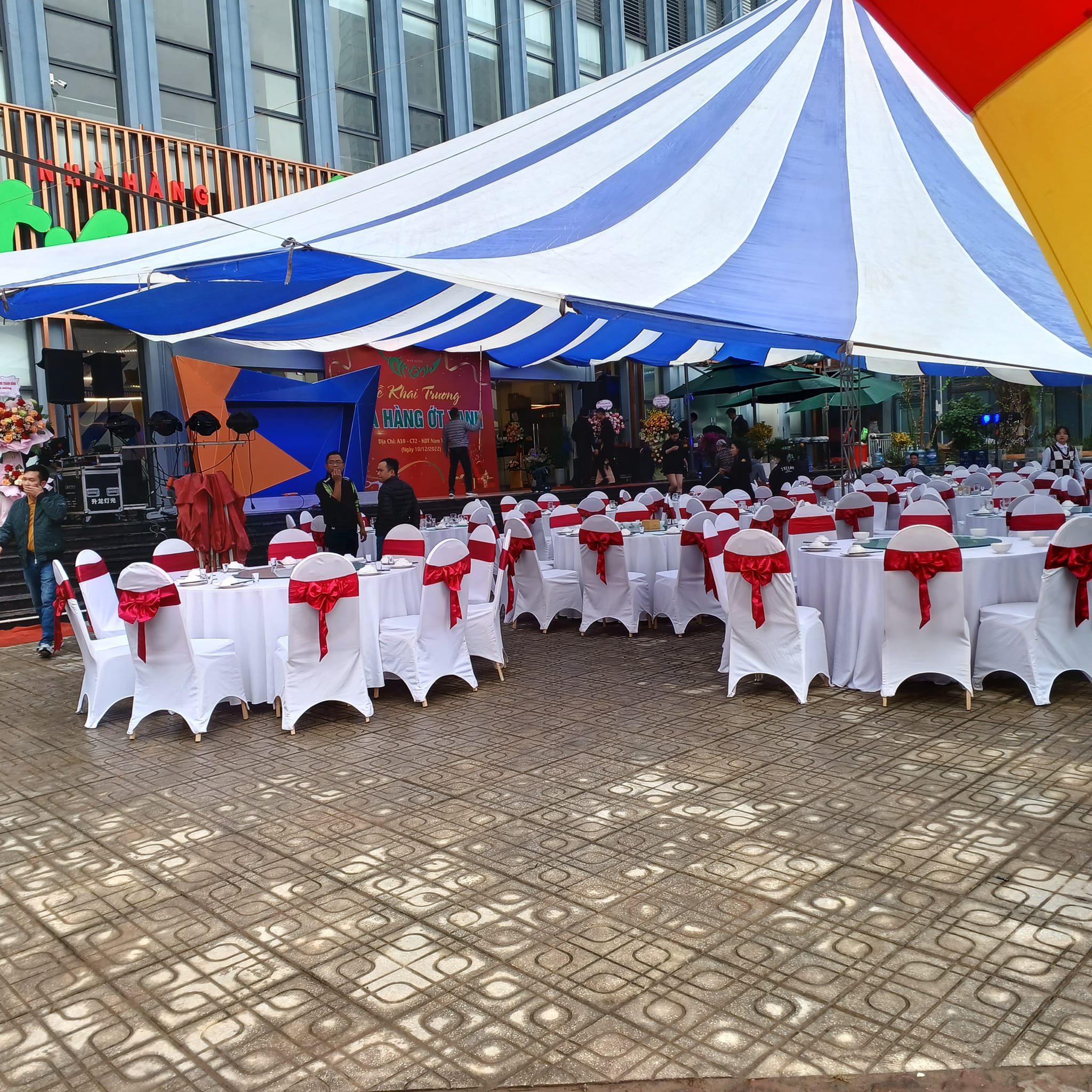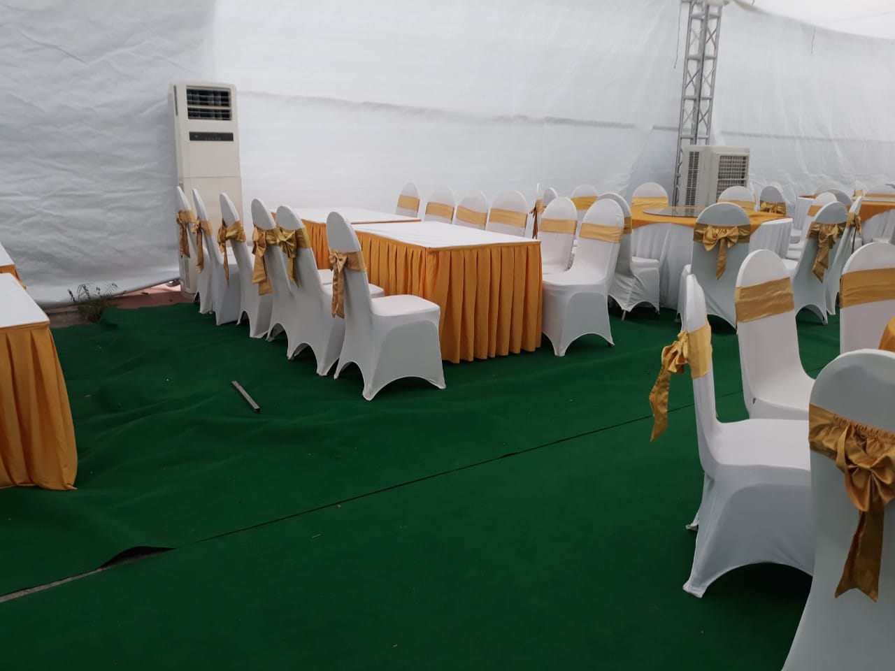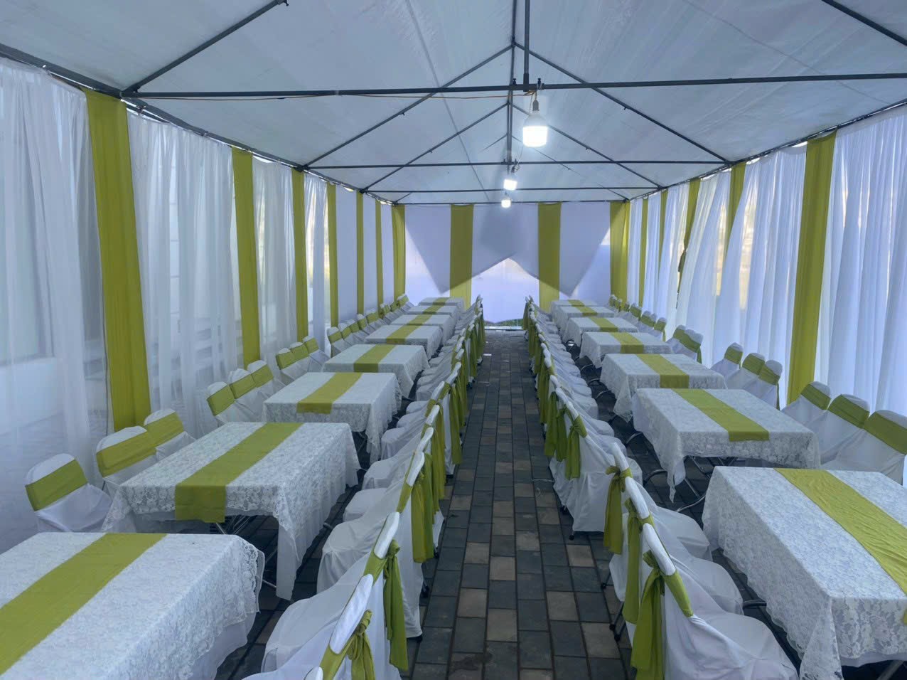 Mọi chiếc bàn được đem tới cho khách hàng đều được chúng tôi sử dụng những chiếc khăn trải bàn đẹp nhất. Kèm theo đó là rip tới tận chân bàn. Những chiếc bàn được trang trí tuyệt vời như vậy, những chiếc ghế đi kèm được trang trí đẹp không kém phần. Ghế chúng tôi sẽ bọc vải bên ngoài và thắt nơ hợp tông màu với màu khăn trải bàn. Điều này nhằm tăng thêm tính thẩm mỹ, tính sang trọng của hội nghị.